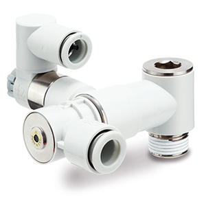 Controlled air flows - with Speed Controller with Pilot Check Valves from SMC.Our pilot operated check valves for pneumatic systems combine safety with precision.They enable intermediate stops and prevent the load from sagging in the event of a pressure drop.Compact in design, powerful in performance - perfect for modern automation solutions.