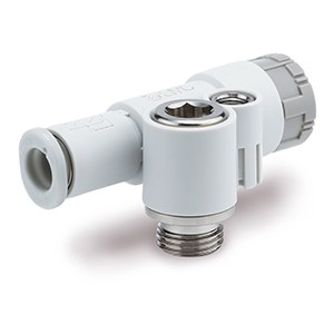 The JAS series Speed Controller with One-touch Fitting have a low installation height and the flow rate can be optimally adjusted even in confined spaces.Quick and easy manual adjustment and locking thanks to the adjustment knob (pressure locking type).Easy installation is possible with an Allen key.The throttle check valves are available as left-hand or right-hand versions.